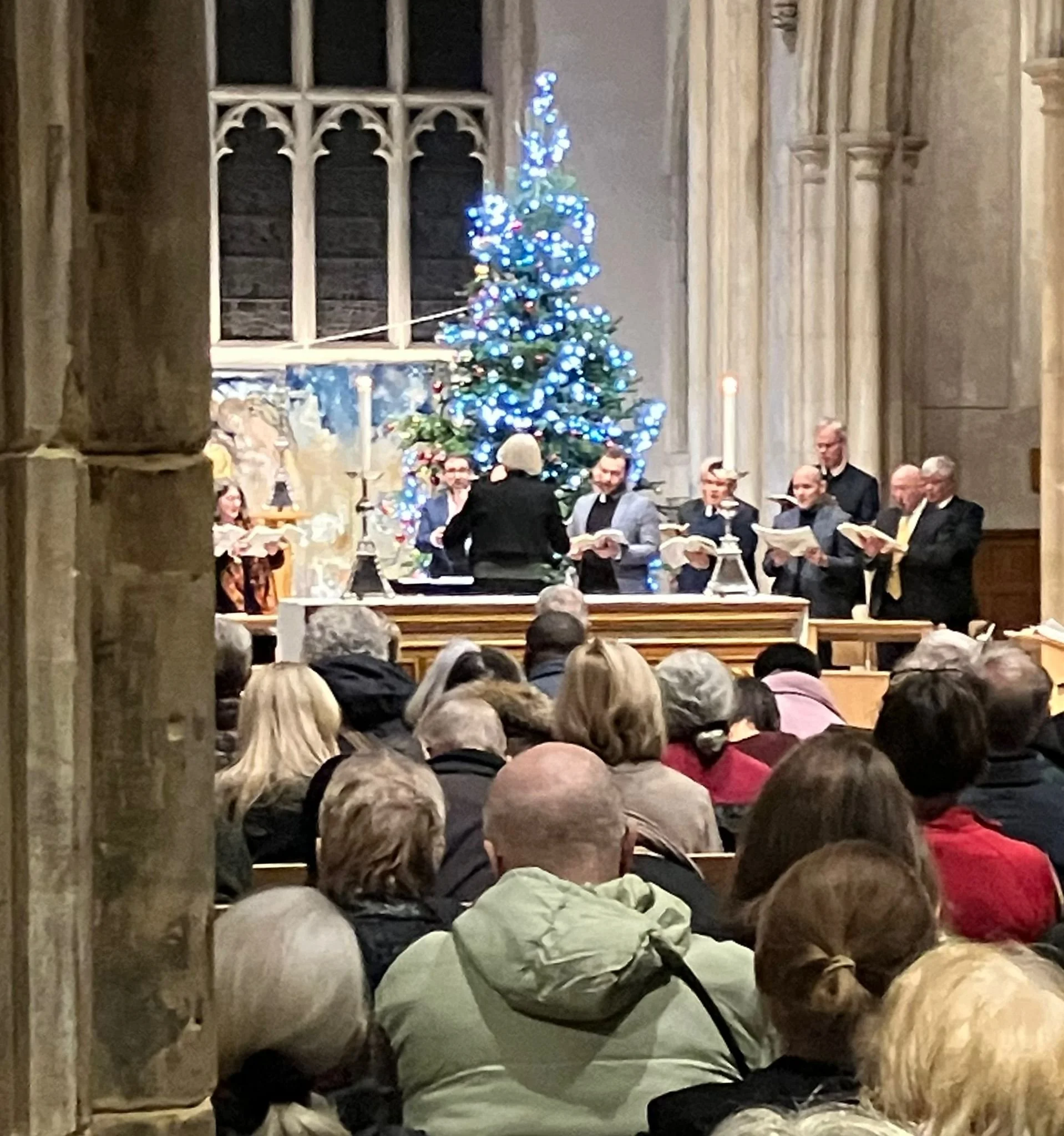Informal and fun carols around the Christmas tree outside the church at lunchtime