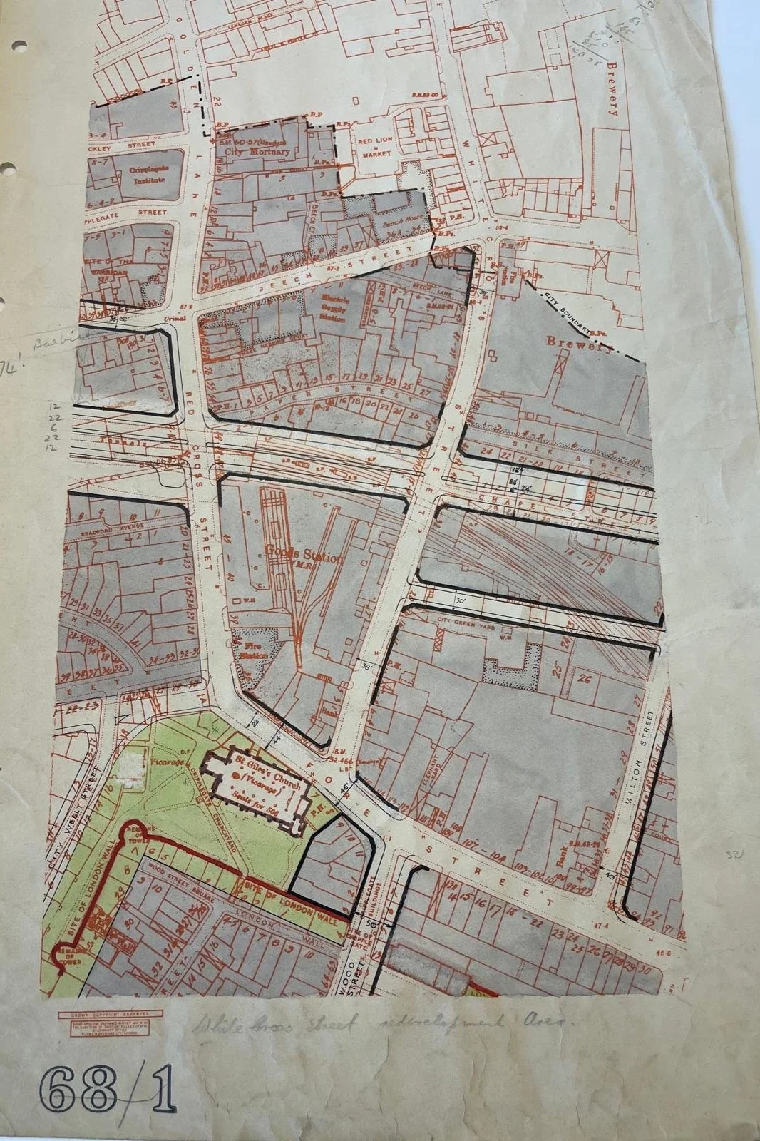By 1733 the expansion of London after the Great Fire was such that the Lordship or northern part of the Parish was separated from St. Giles and a new church—St. Luke's built on Old Street by the architects Hawkesmoor and John James.